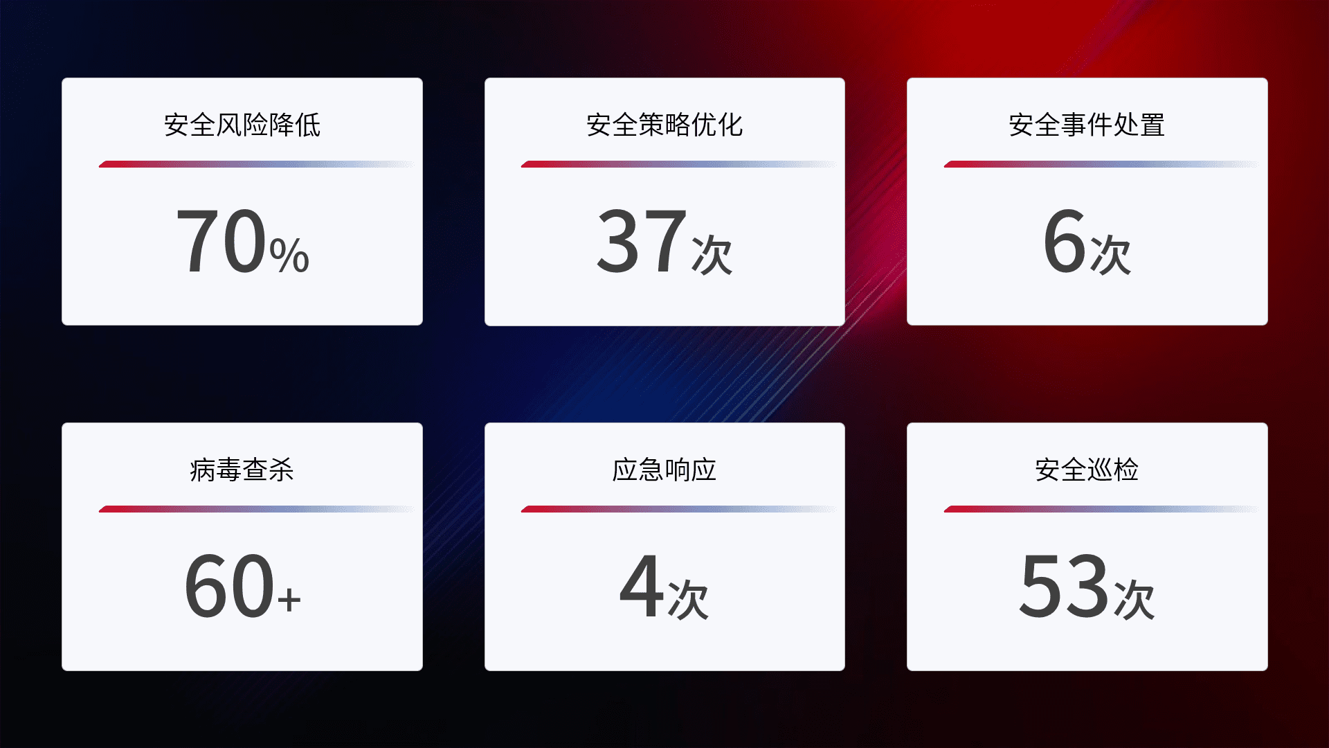 提供全面的安全事件报告体系,,,包括处置报告、、、周报、、季度和年度总结,,,,结合持续监控,,帮助客户深入了解网络安全状况。。。。